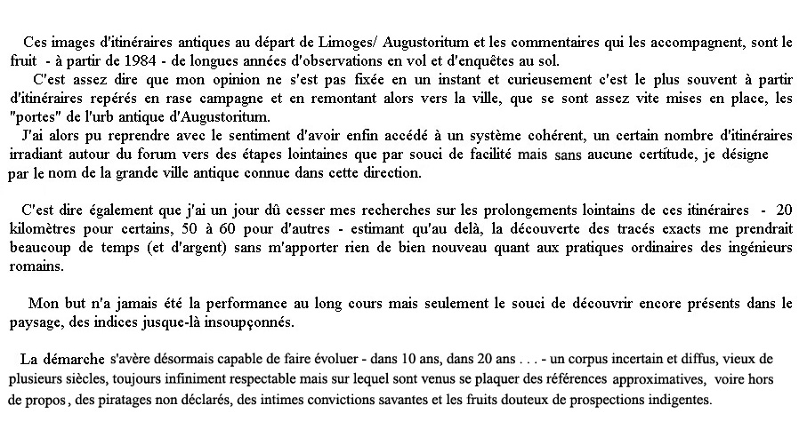 prochaine page. Une image GOOGLE ci-dessus et deux vignettes un peu plus haut pour vous inciter à continuer vers le sud-sud-ouest après le passage de la Vienne et une arrivée non prévue d'un chemin venant d'un gué situé vers le Bas-Mérignac. Je vous rejoindrai vers Royer , près de la convergence de trois itinéraires encore inconnus et bien sûr inédits, par le Pont-St-Martial et autres lieux moins prestigieux . . . mais ça risque d'être long. |