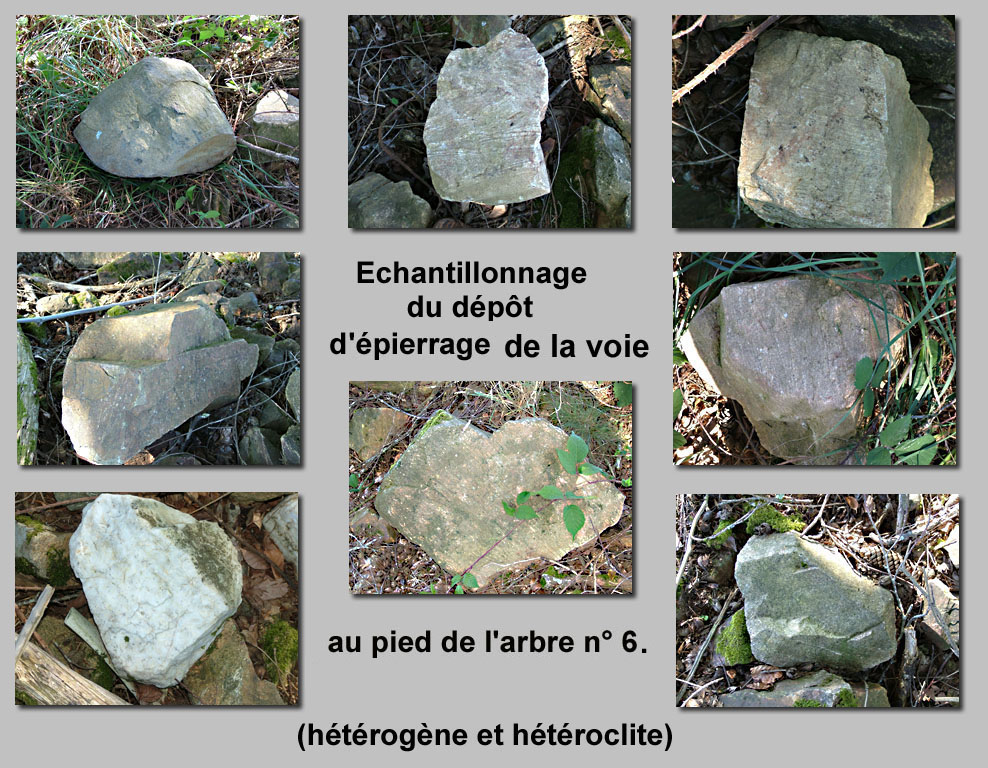 Et tout cela pour décrire une hauteur parsemée de CAILLOUX roulants : les restes d'une ancienne voie romaine désaffectée depuis des siècles et pillée dans le même temps de ses matériaux pour toutes sortes de nouveaux usages. Et parfois - sans que je sache pourquoi - des CAILLOUX encore stratifiés sur un substrat de CALCAIRE pilé ainsi que je vous l'ai montré dans d'autres pages, en d'autres lieux. |