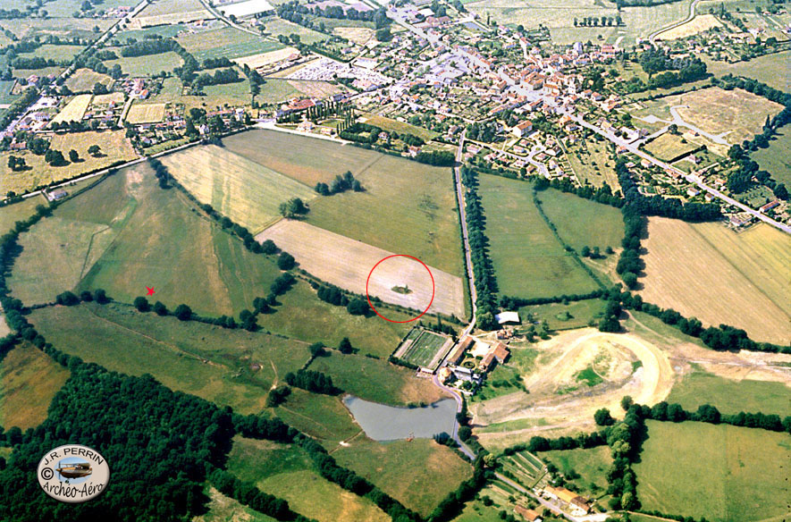 A l'archéologue de tenter de les retrouver, d'en découvrir le sens et d'en tirer profit. Entre autres choses plus ou moins signifiantes : l'arrivée à la limite sud du domaine de Busserolles du diverticule venant de la voie des Coutumes et dont la trace apparaît encore, remontant à peu de distance, l'allée actuelle du domaine. Et non loin, à droite, les anomalies pédologiques ( qui ont trait à la nature et à l'apparence des sols ) de Chez-Lemade et de Lavaud, déjà évoquées en seconde page : "Gaulois et gallo-romains". . . (petites flèches rouges). Alors et tout à la fois une tradition gauloise qui perdure et une romanité qui s'implante : l'époque gallo-romaine quoi ! |
