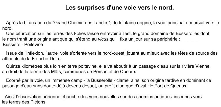 Laissons le grand domaine antique de Busserolles et le vicus de Bussière-Poitevine aux bons soins des archivistes et des historiens et revenons au trivium (bifurcation) des Folies.