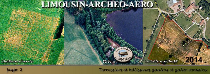 été attiré un jour par la trace éphémère d' une structure archaïque : sur une dizaine de passages aériens, seuls trois ou quatre m'ont apporté des vues intelligibles et complémentaires du site. Commune de St Bonnet-de-Bellac. |