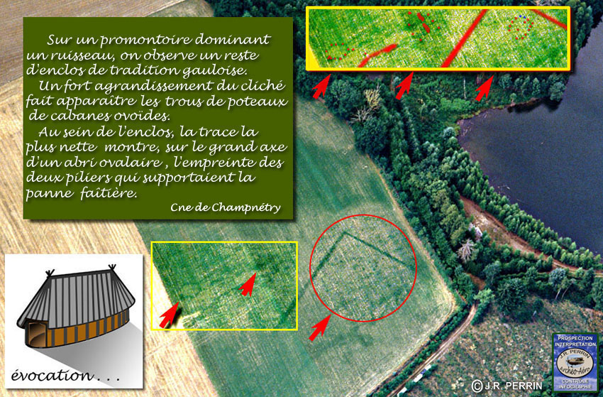 leurs maisons élevées en matériaux périssables, étaient entourées de levées de terre et protégées par des fossés. Devenus gallo-romains, leurs habitudes perdurèrent après la conquête. La classe aisée, très aisée, les remplaça de place en place, par des villas "à la romaine". Oppidum, villa, motte, enclos, cabane, sanctuaire, métallurgie, voies, pistes, modes agraires . . . |