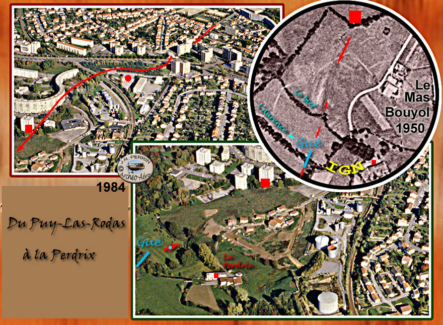Aux fins de repérage, un rond rouge vif rappelle, sur toutes les images qui encadrent ce texte, que la vieille rue du Gué-de-Verthamont a repris son titre en entrant sur le terroir du Roussillon par le travers de la résidence étudiante. Ainsi s'instaure, y compris chez les meilleurs connaisseurs de ces problèmes, une confusion entre l'itinéraire précoce et celui plus tardif, sans préjudice d'un zeste de folklore qui complique à l'envi un sujet déjà difficile. Et nous ne sommes pas sûr que nos explications complexes éclairent beaucoup la lanterne du simple dilettante !