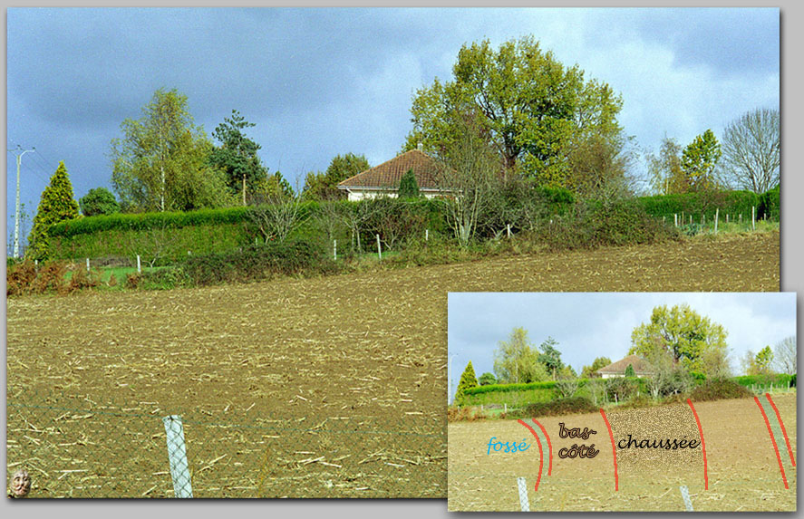 perceptible. Après le gué, la haie qui matérialise encore la trace routière s'infléchit