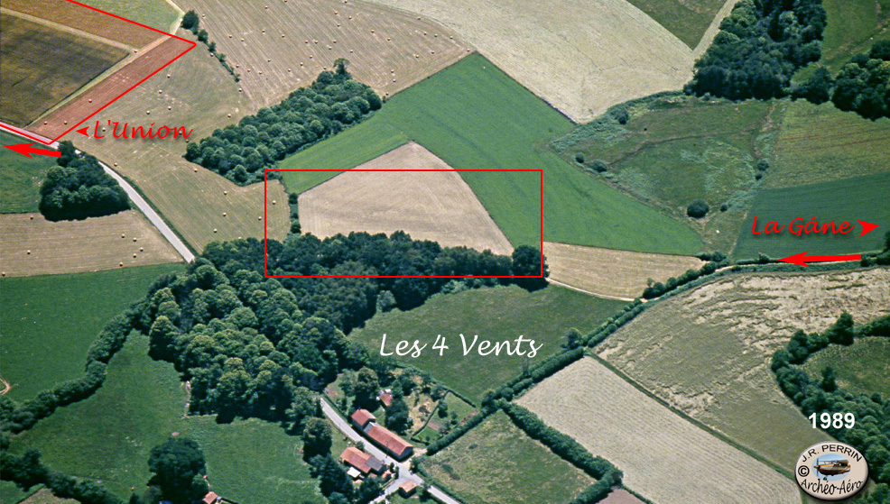 Enfin le nom du lieu : "l'Union", venant en droite ligne du latin, appelle la notion de réunir, de joindre . . . ainsi qu'il sied à un concours de voies. Dans la parcelle de l'autre côté de la route, une trace claire pourrait marquer une ancienne levée de terre arasée par les labours. Parallèlement l'arrêt de la colluvion de versant aurait créé à son pied une trace plus sombre venant de matières organiques accumulées durant des siècles. Et si nous avions pu observer des labours sur les parcelles voisines, nous en aurions sans doute appris davantage. La large courbe de la voie antique contournant le site permet cependant de penser à un petit camp d'étape militaire sur la route antique de Lyon : l'indice est bien sûr totalement nivelé.