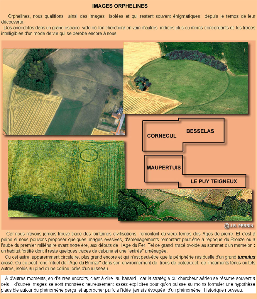 été attiré un jour par la trace éphémère d' une structure archaïque : sur une dizaine de passages aériens, seuls trois ou quatre m'ont apporté des vues intelligibles et complémentaires du site. Commune de St Bonnet-de-Bellac. |