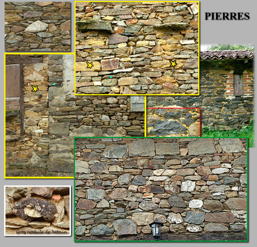 les pierres tirées du sous-sol à faible profondeur (étoiles jaunes). Il s'agit