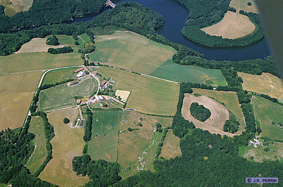 sérieux sur la suite du tracé.Or sur le plan piraté on voit la route des gaulois, une fois passé un gué probable, continuer droit vers le nord en gravissant hardiment la pente vertigineuse de la rive droite, défoncer la fortification et traverser le plateau quasi circulaire d'un des plus beaux "éperons barrés" (forteresse primitive des premiers âges du fer : indice 14) connus en Haute-Vienne : l'éperon barré des Champs.